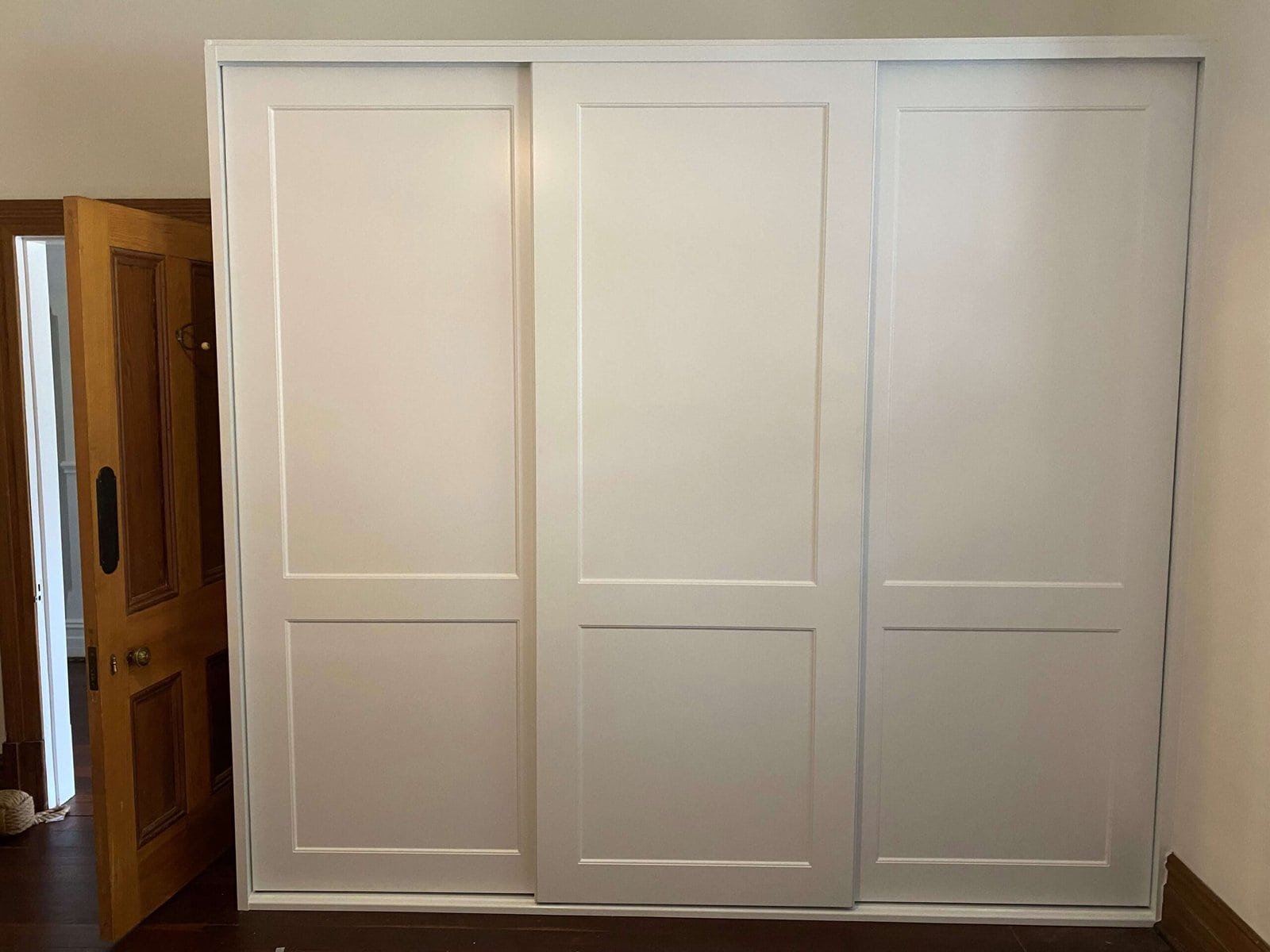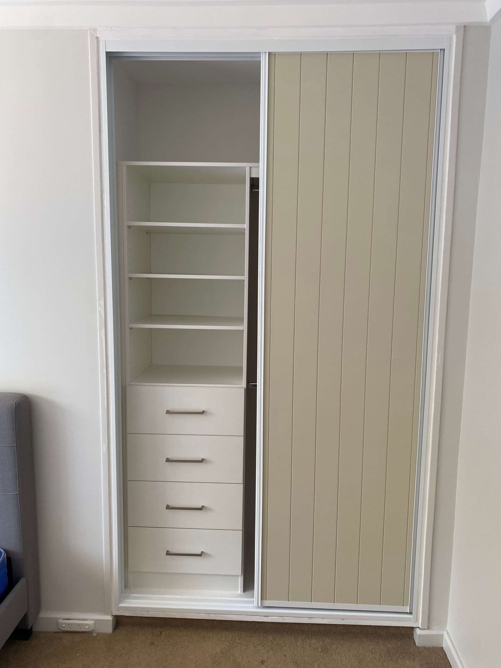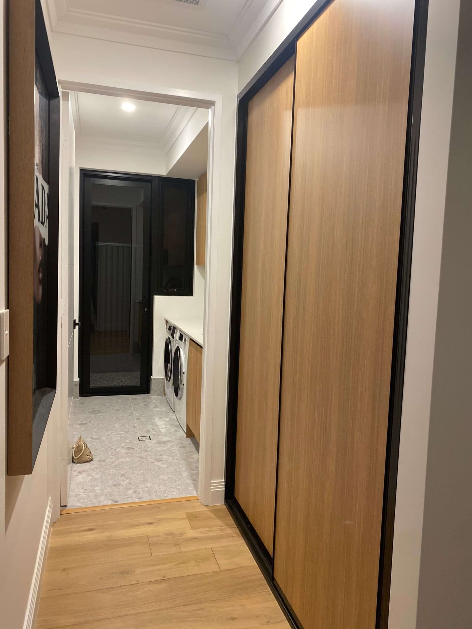 Triple Track Systems – Most Sliding wardrobes are run on a two-track sliding system. Canterbury Robes also offers a triple track system which allows all doors to slide to one side. The triple track system is prevalent for wet areas where the washing machine and dryers are hidden behind these sliding doors – this is particularly popular with apartments in our commercial projects to optimise space as well as retirement villages for easy wheelchair access.