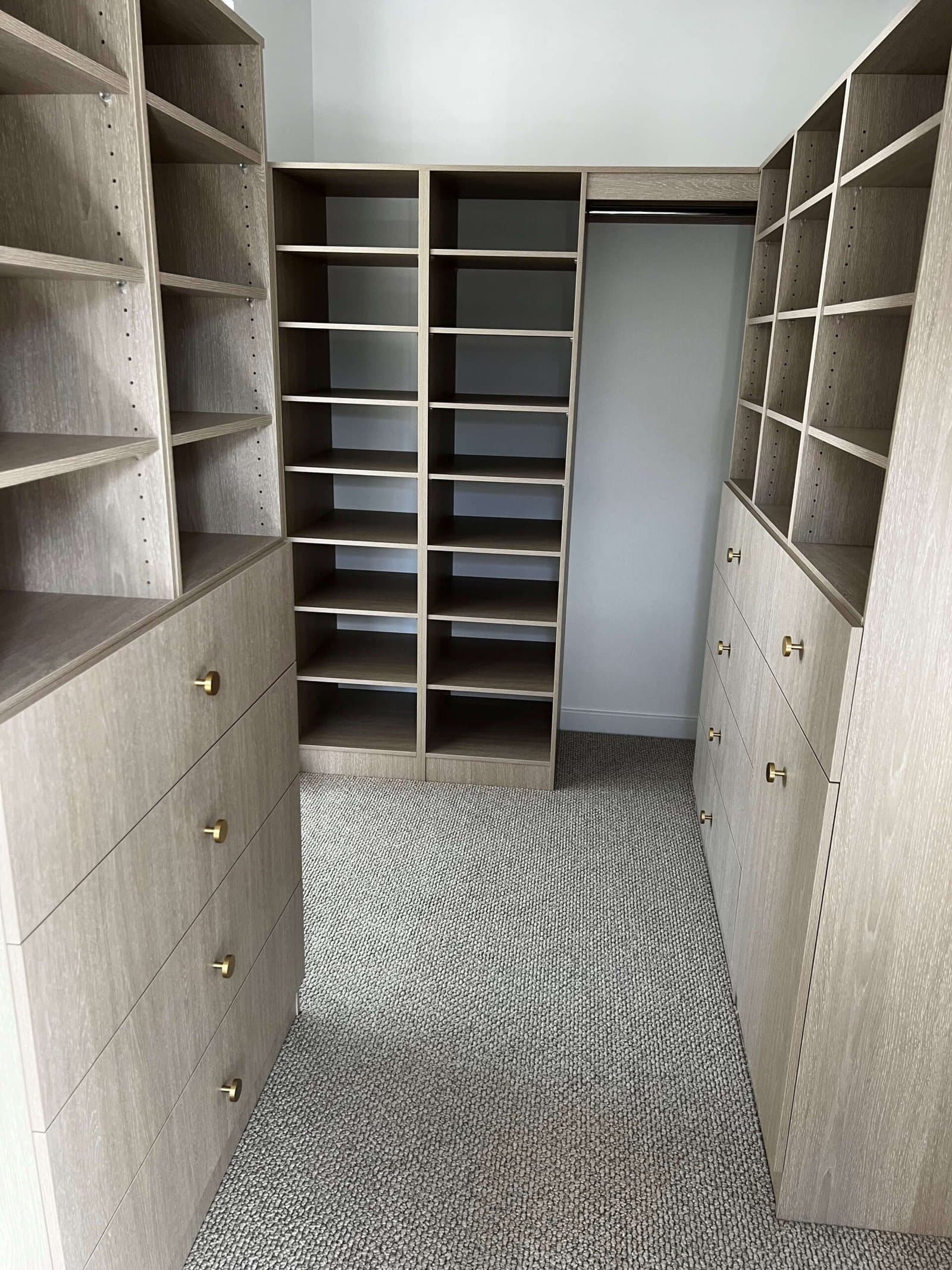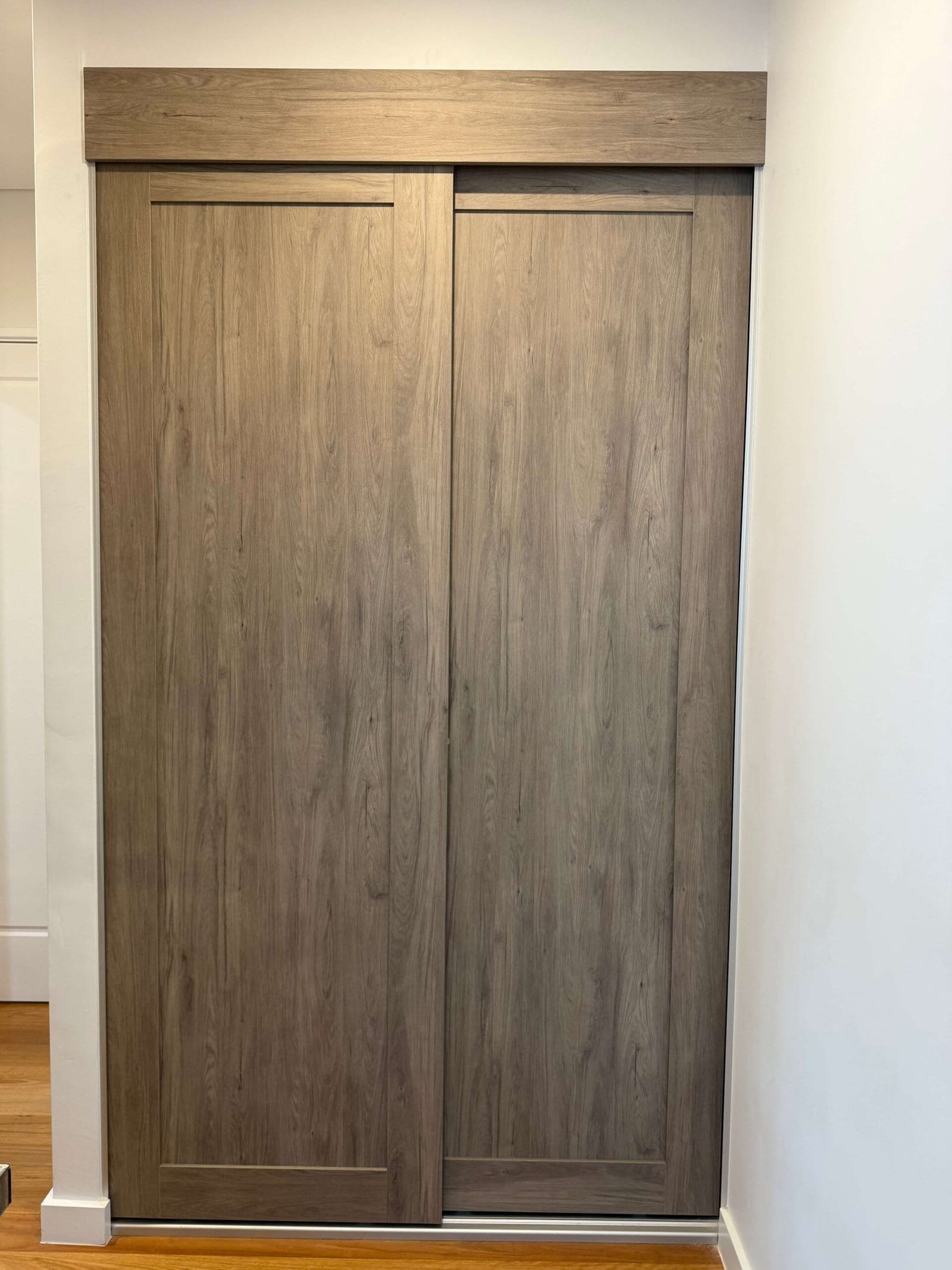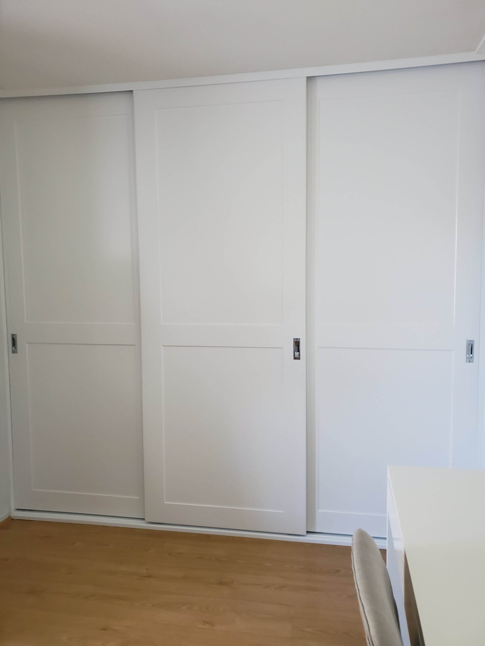 Triple Track Systems – Most Sliding wardrobes are run on a two-track sliding system. Canterbury Robes also offers a triple track system which allows all doors to slide to one side. The triple track system is prevalent for wet areas where the washing machine and dryers are hidden behind these sliding doors – this is particularly popular with apartments in our commercial projects to optimise space as well as retirement villages for easy wheelchair access.