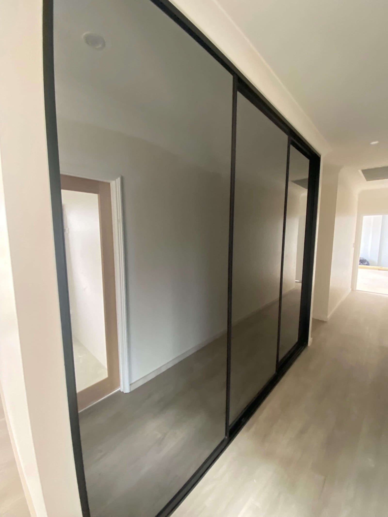 All our Mirror and Coloured Glass Sliding Door panels are 4mm thick with an A grade white vinyl backing to prevent shattering when broken.