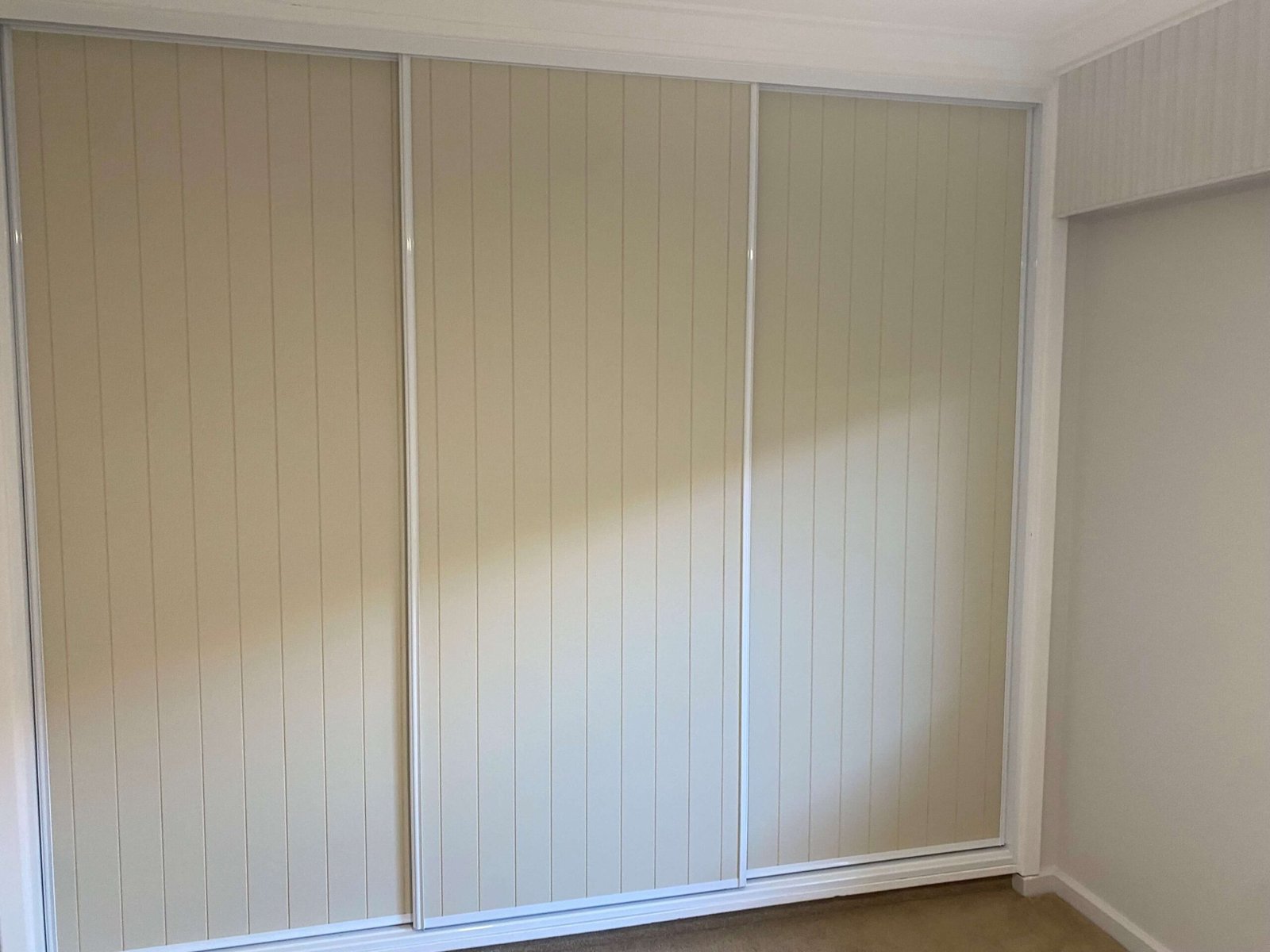 Sliding Robes are fast becoming a trendy feature within a room design – for those wanting to make a statement we also offer unique split panel designs with clear anodised bars.